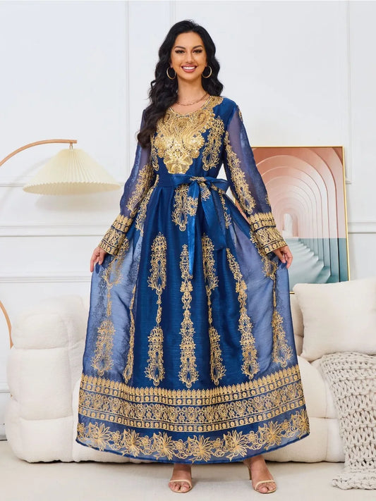 Eid Embroidery Arab Muslim Party Dress for Women Abaya Jalabiya Long Dresses Morocco Kaftan Vestidos Dubai Ramadan Gown Robe