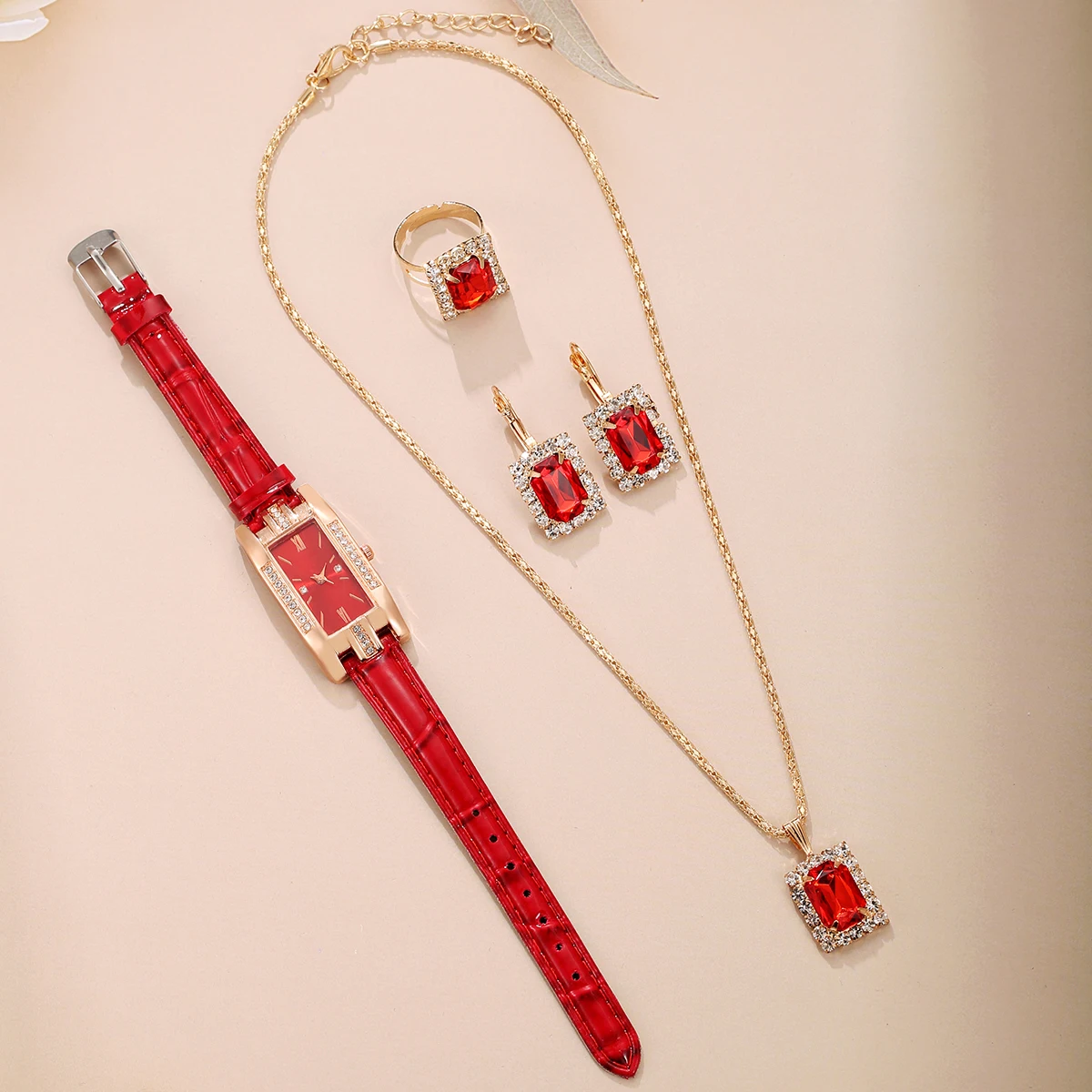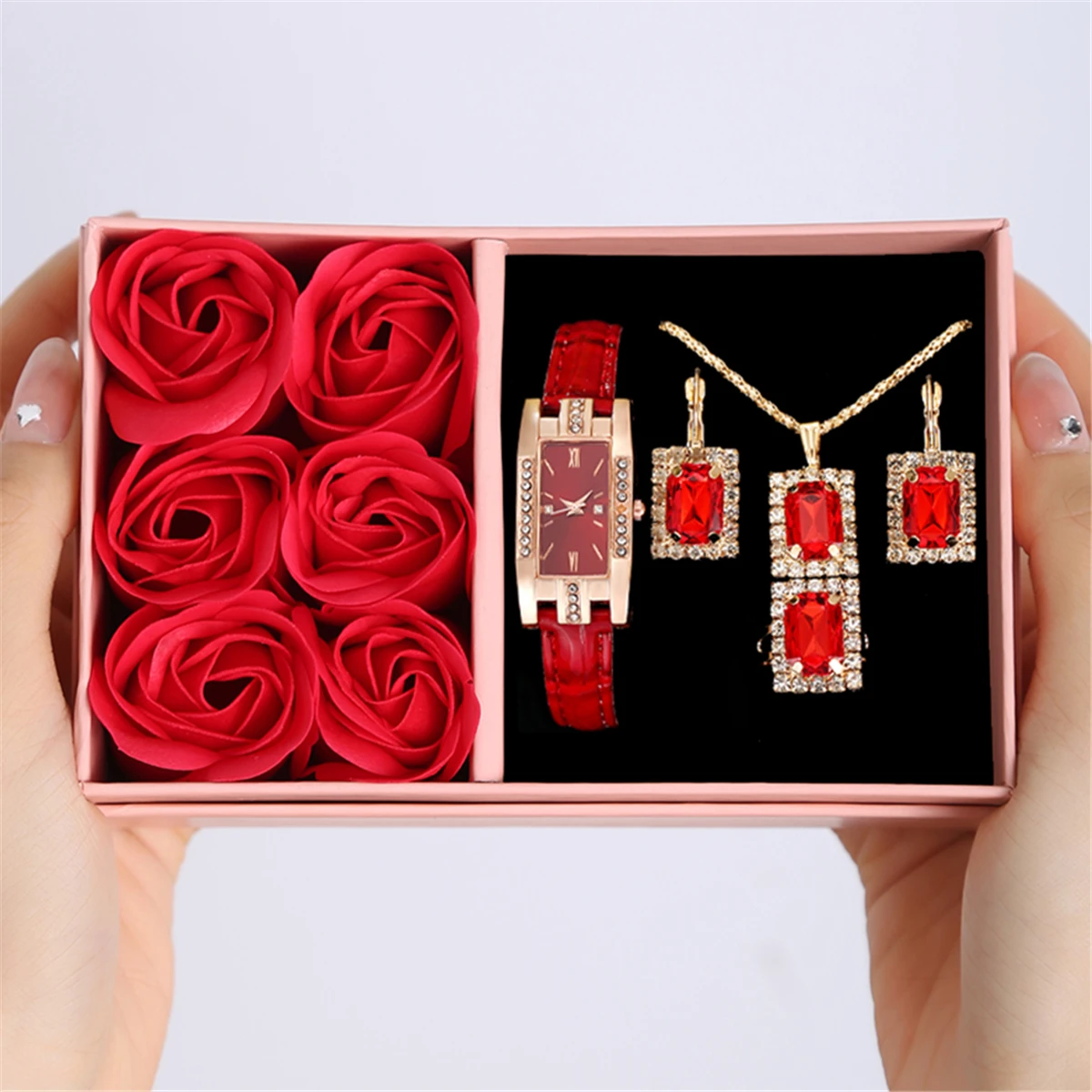 5PCS New Women's Fashion Trend Alloy Case Non Waterproof Leather Watch Gift Box Set