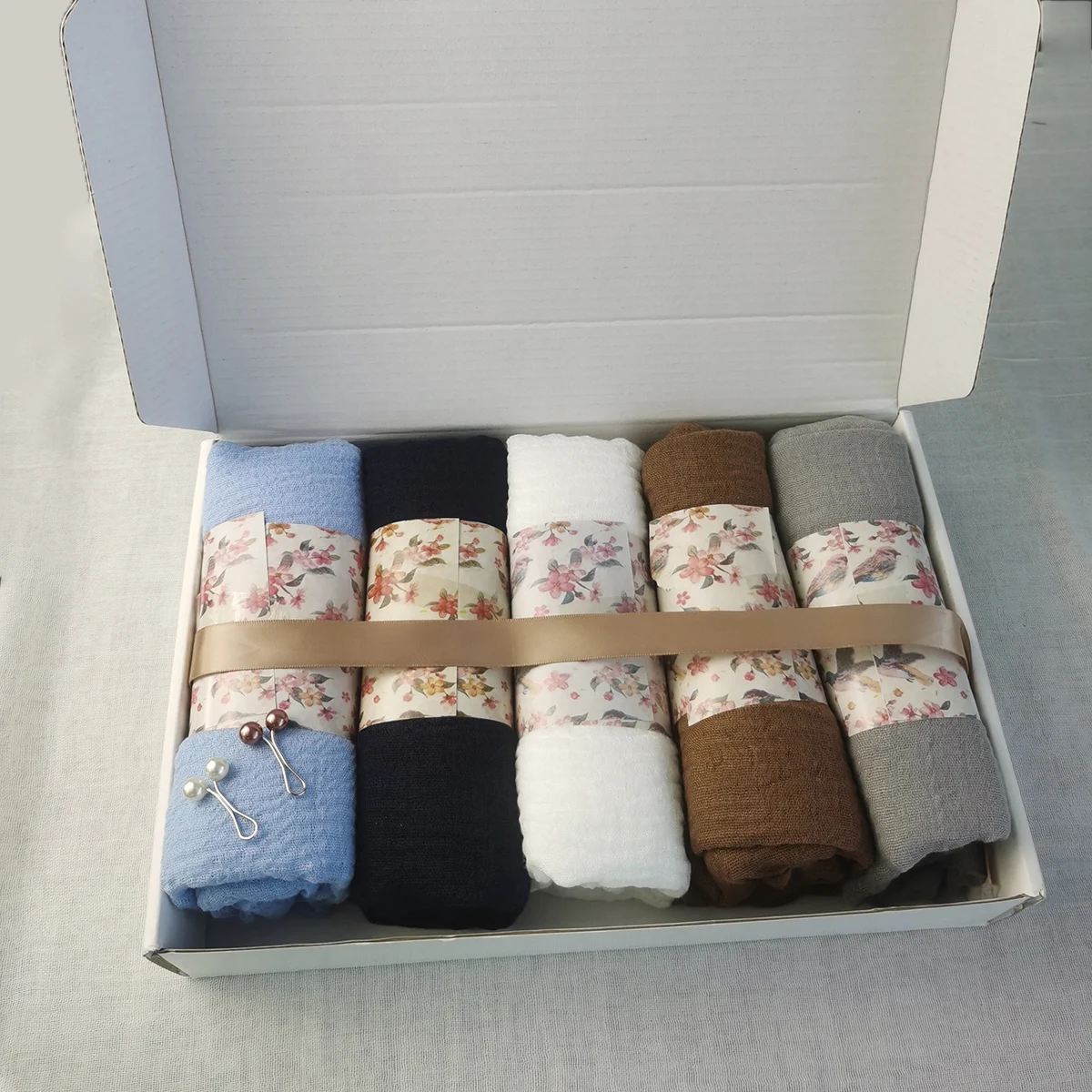 5PCS /Set Cotton Muslim Hijabs for Women Scarf Plain Shawls Femme Musulman Soft Viscose Rayon Headscarf Islamic Turban Headband