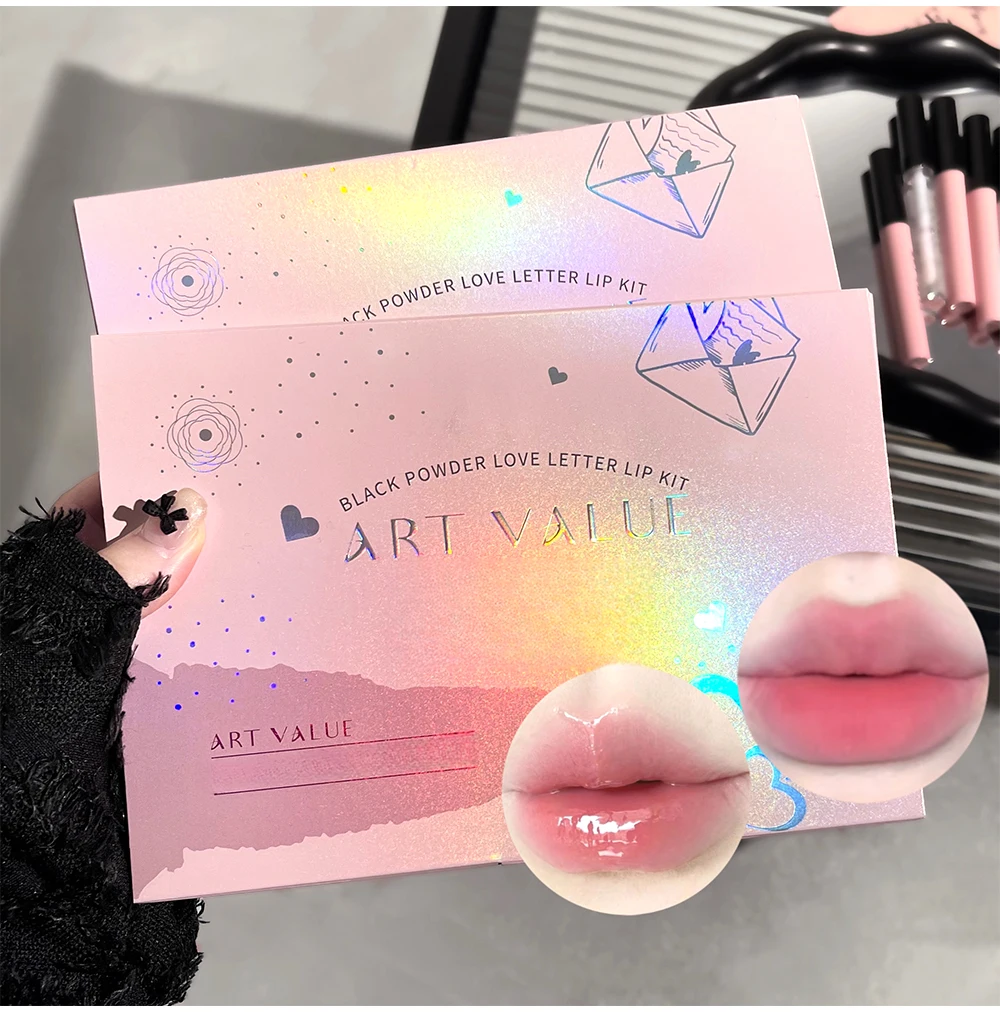 【Produktname】Schwarzes rosa Liebesbrief-Lippen-Make-up-Set