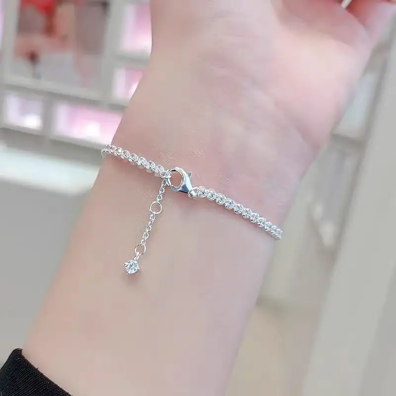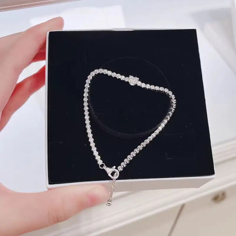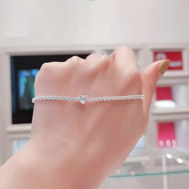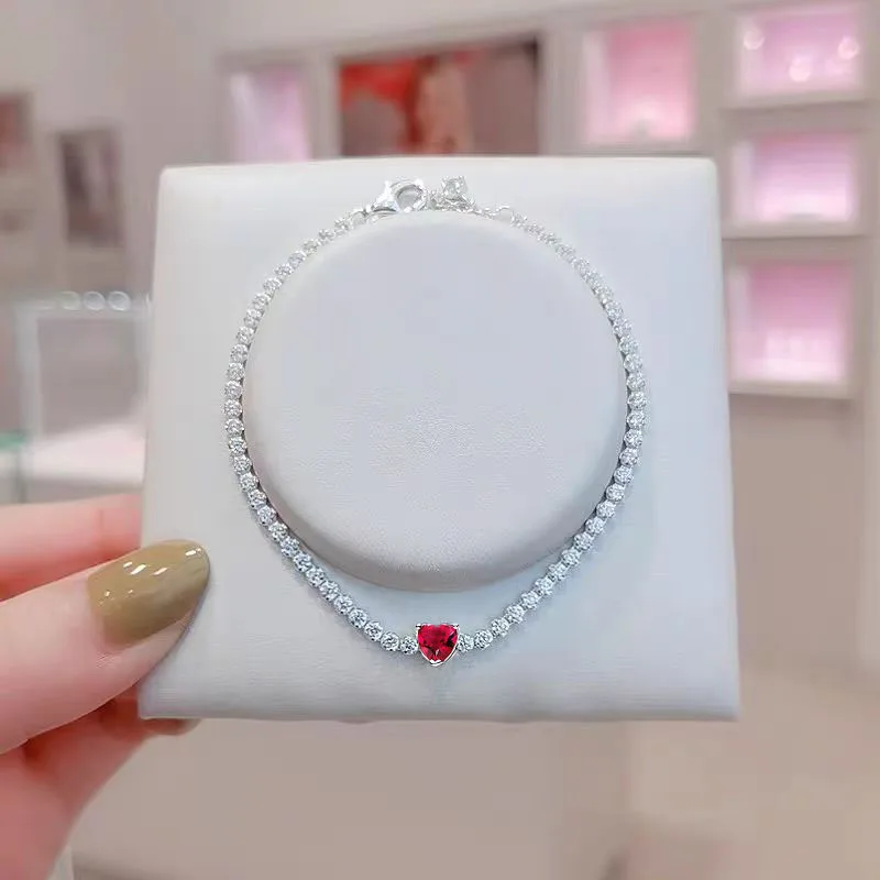 925 Silver Sparkling Red Heart Bracelet Pink Row Tennis Bracelet Shining Star Bracelet For Women Anniversary Gift Fine Jewelry