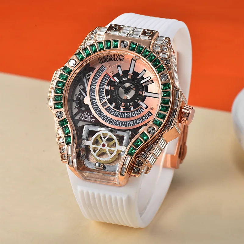 Hochwertige Iced Diamond Uhr Herren Grüner Diamant Hip Hop Stil Automatik Manuell Mechanisch Business Stil Quarzuhr