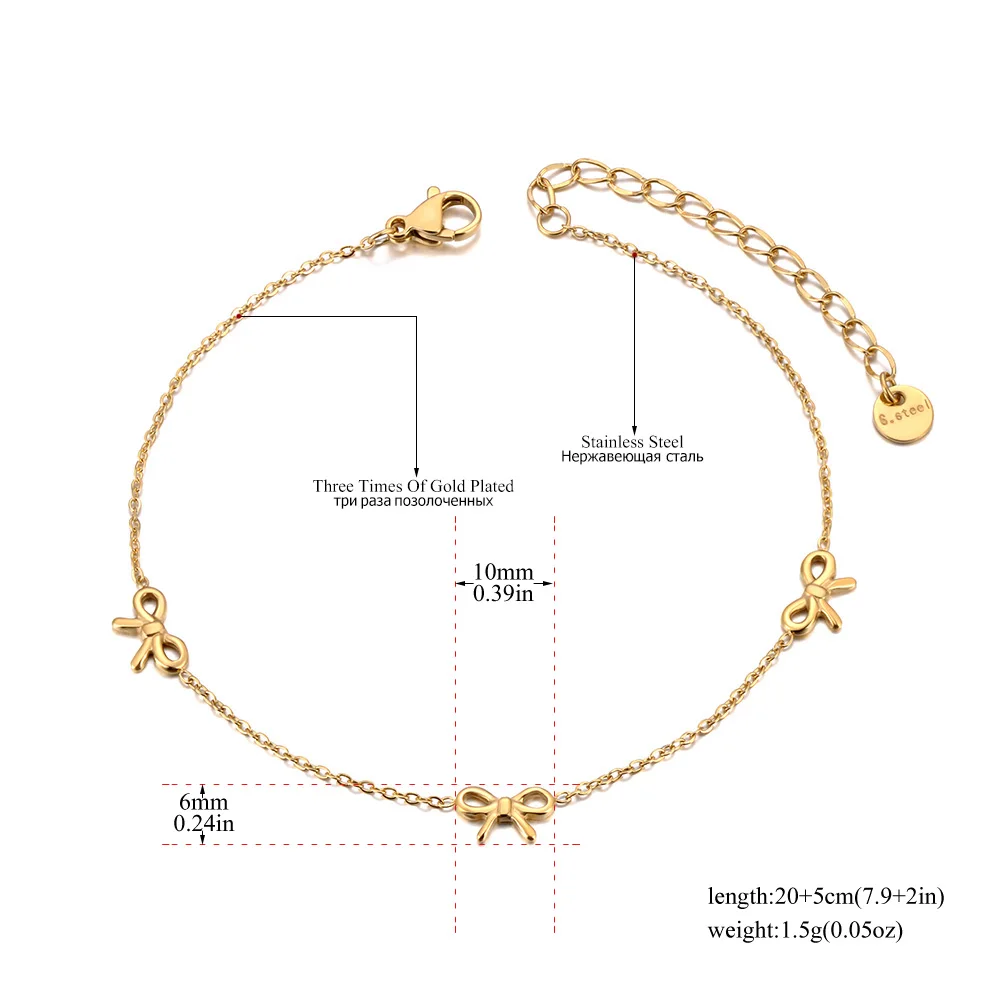Lokaer 18K Gold Plated Stainless Steel Bowknot Charm Anklets For Women Trendy Bohemia Beach Party Chain Anklet Jewelry A24020