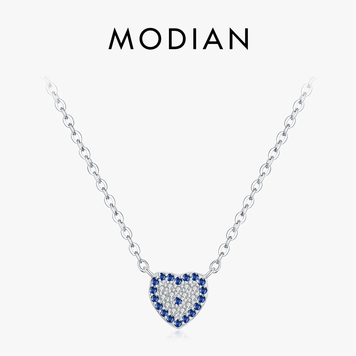 MODIAN 925 Sterling Silver Basis Hearts Blue Zirconia Pendant Necklace Fashion Stackable Link Chain Jewelry For Women Gifts