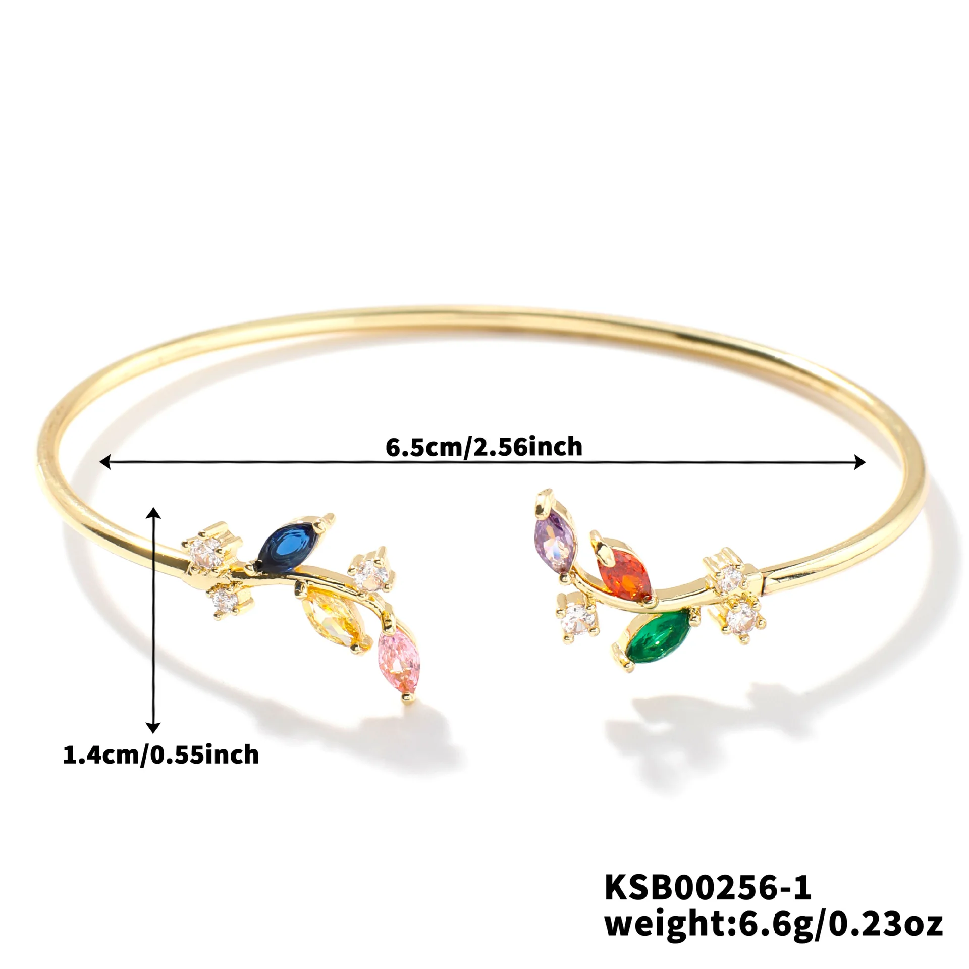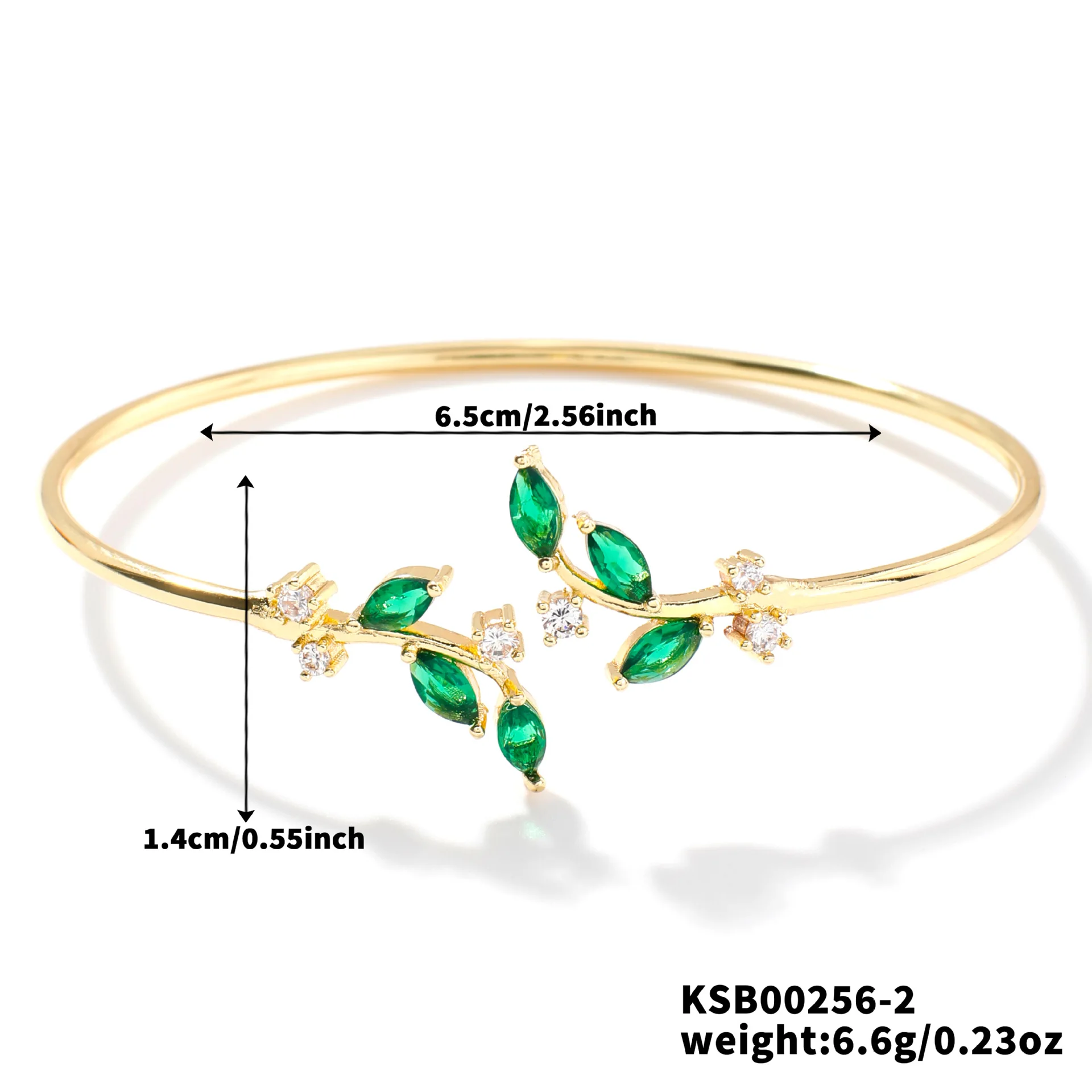 ZAKOL Simple Leaf Zircon Open Bracelet Gold Color Stainless Steel Cuff Bracelet Pulseira Feminin Tiny Hand Jewelry
